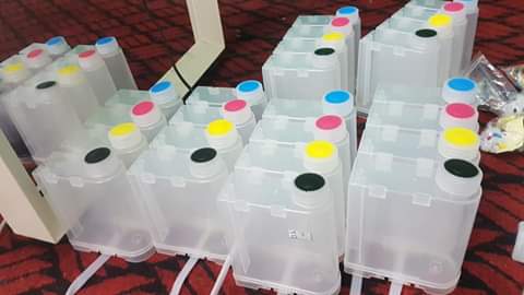 Sau khi chuẩn bị bộ hê thống 2 lít mực để sử dụng máy in Epson C5290 in được nhiêu hơn thì mình phải mua bộ hệ thống 4 màu 2lit như hình trên.