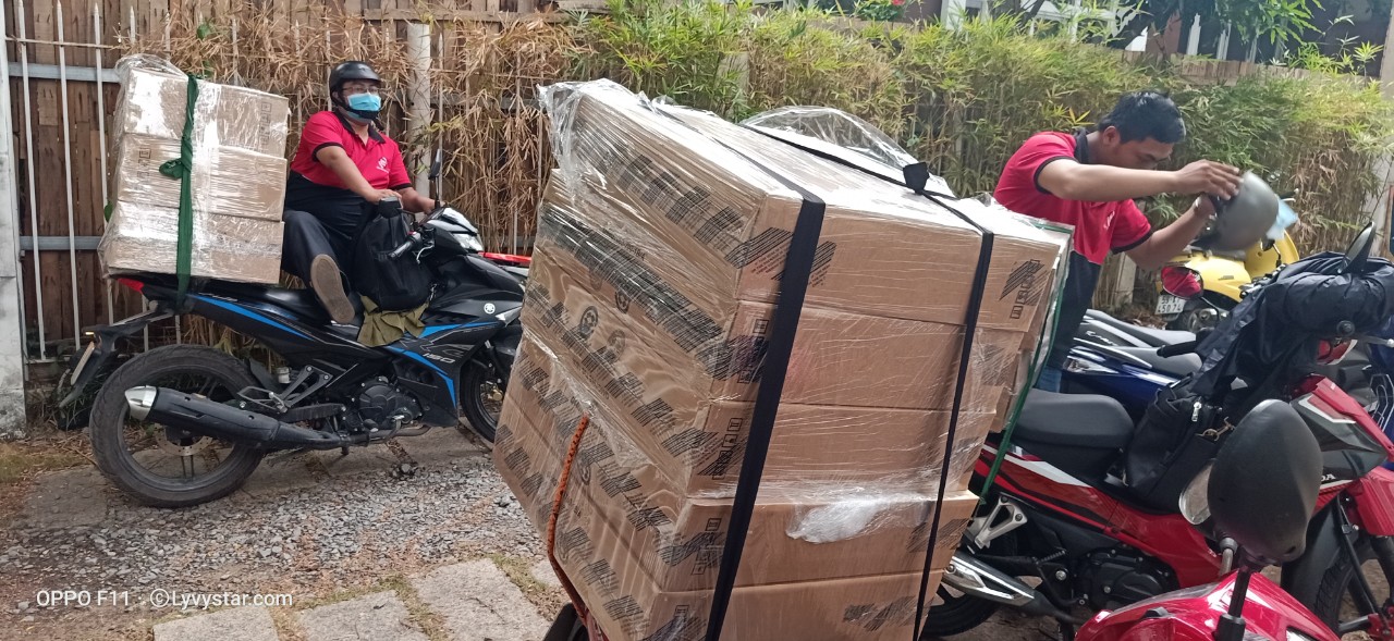 Nhân viên Lyvystar đnag giao 7 bộ máy tính dell cho khách tại quận 6 HCM cho khách kinh doanh Online..