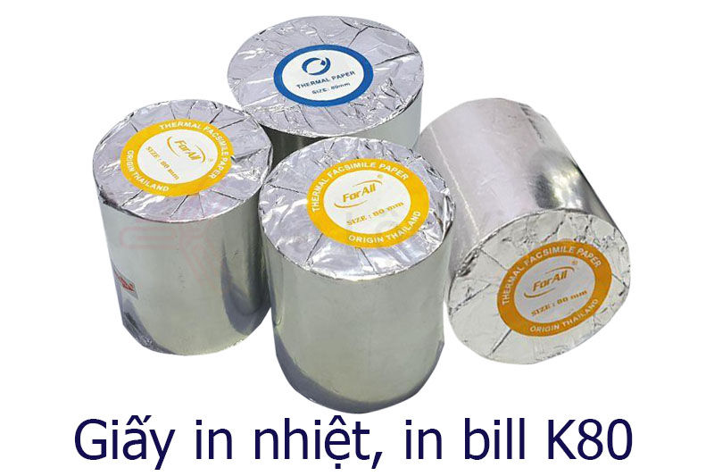 - Giấy in hóa đơn K80 hay còn gọi là giấy in bill K80 sử dụng cho các loại máy in nhiệt hay máy in bill K80 dùng cho siêu thị, shop, nhà sách, nhà hàng, quán ăn...Giấy in hoá đơn cảm nhiệt trực tiếp không cần dùng băng mực, sử dụng in hoá đơn, chứng từ hàng hoá bán hàng, kho phiếu