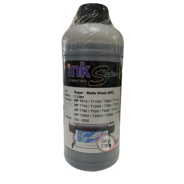 Mực Ink Super 1 lít (Màu Đen Matte) máy in HP khổ A0 là loại mực in phun màu chuyên dụng cho những dòng máy in khổ lớn HP A2, A1, A0 với các model như: T520, T610, T620, T770, T790, T795, T1100, T1200, T1300, T2300, T1708...