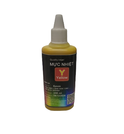 Tên mực in: Mực nhiệt Inkjet Ink Màu mực: Vàng Dùng cho máy in: Epson L805, L1800, L800,... Trọng lượng: 100ml