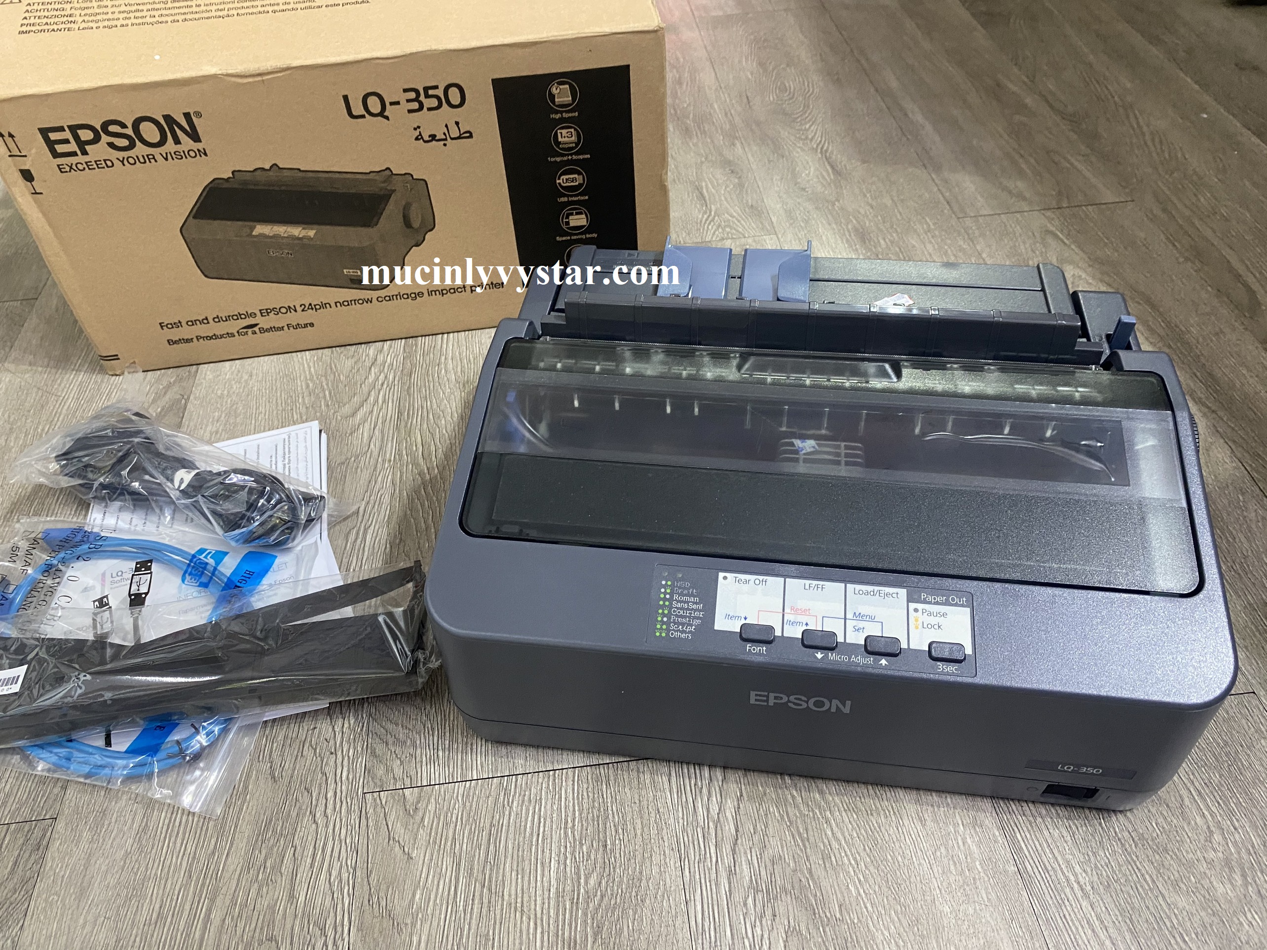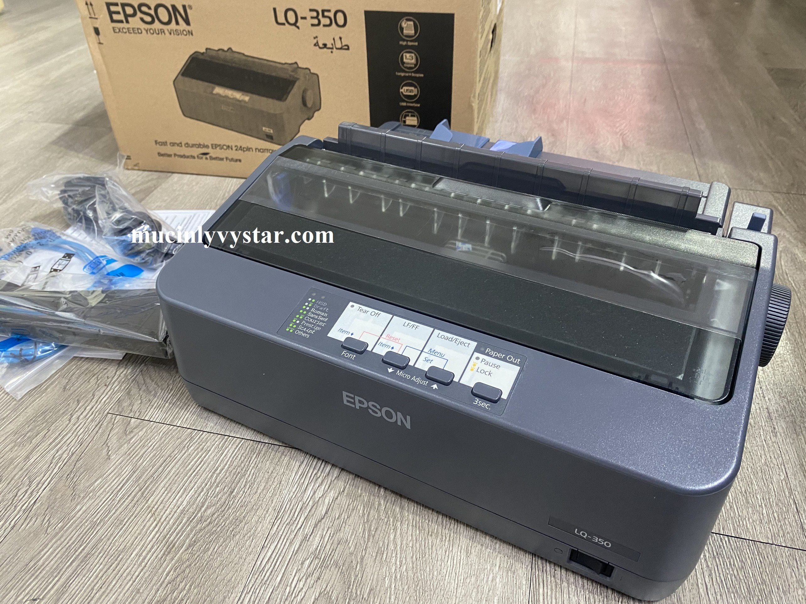 Tốc độ máy in kim Epson LQ350 nhanh hơn LQ-310 (model mới nhất) và in nhanh hơn (24 kim, màu xanh đen, nặng = 4.4kg, made in Indonesia, chất lương cao phân phối khu vực Châu Âu