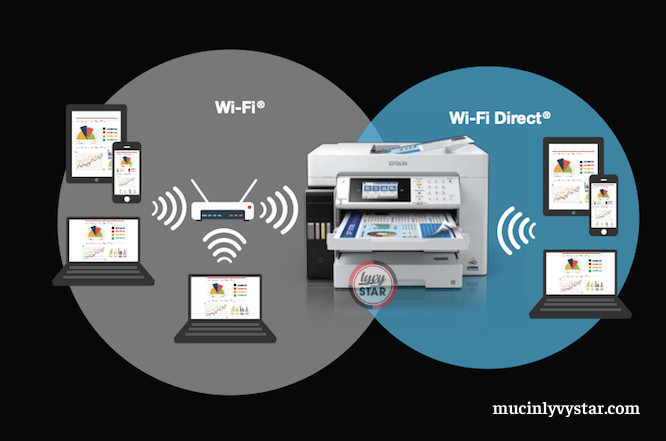Máy in phun màu Epson L15180 được tích hợp khả năng kết nối không dây qua WiFi và kết nối mạng Lan nội bộ phô biến hiện nay.