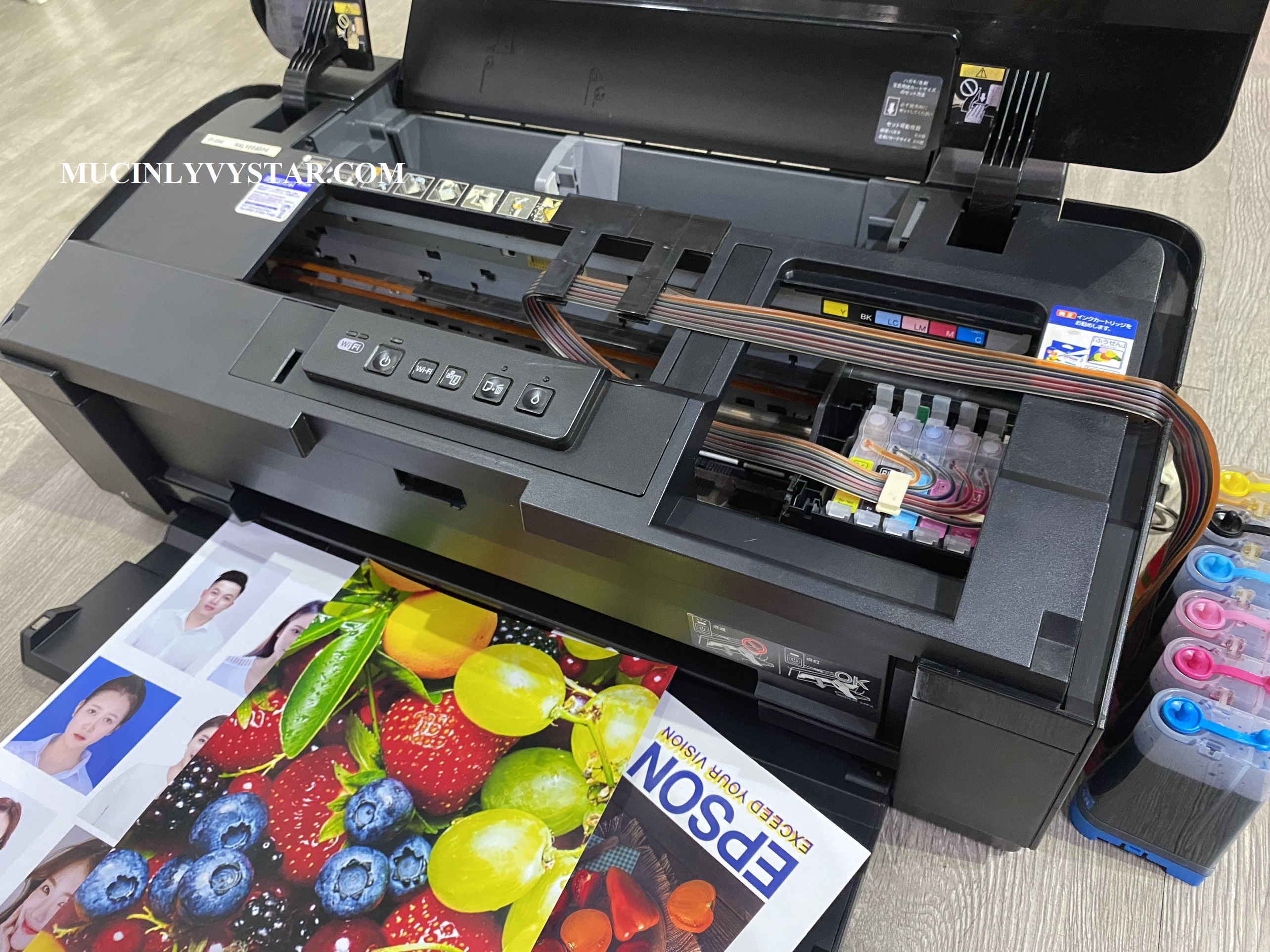 Máy đã được gắn sẵn hệ thống dẫn mực ngoài giúp tăng số lượng mực in lên gấp nhiều lần so với mực zin bên trong máy giúp tiết kiệm tối đa chi phí. Đầu phun của máy đủ tia đủ nét, dàn cơ nội địa nên kéo giấy rất khoẻ.