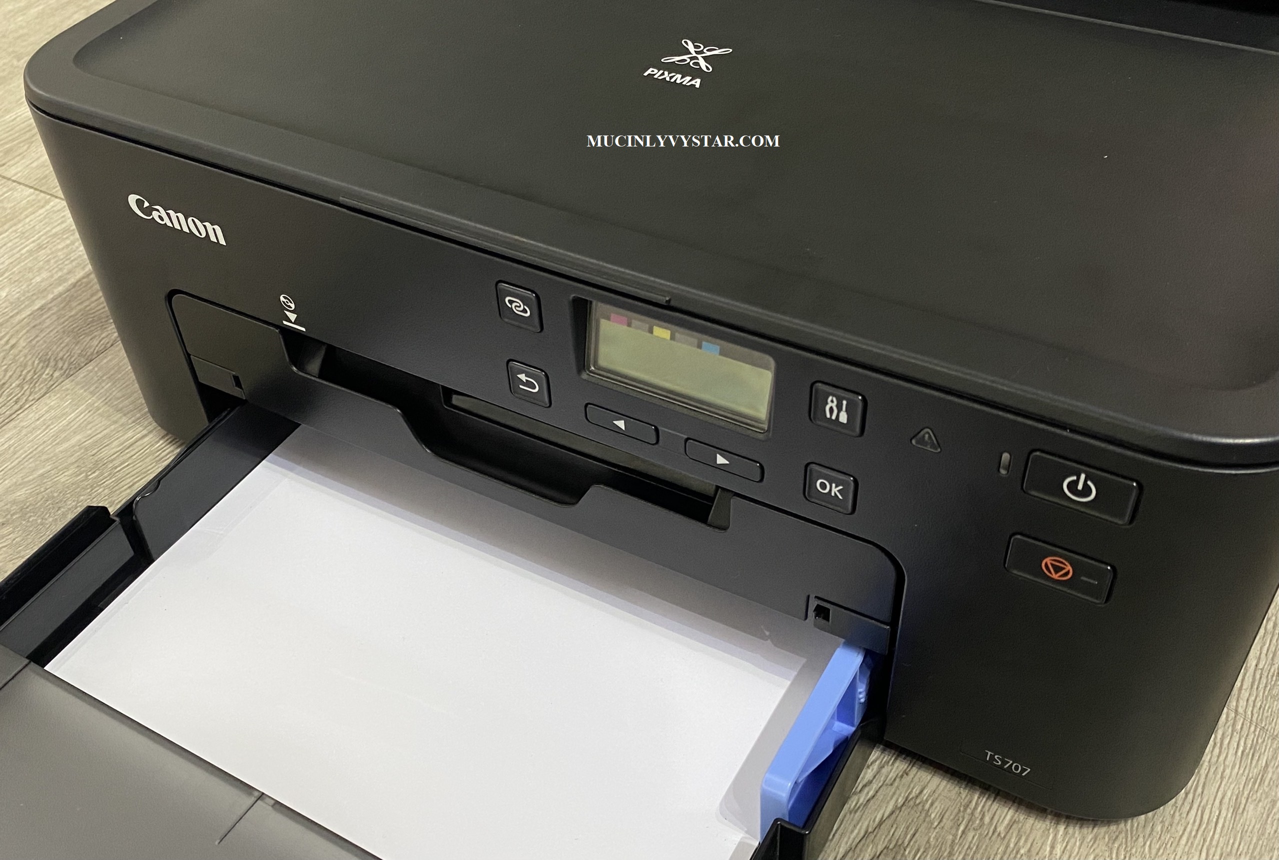 So với “người anh” tiền nhiệm iP7270, máy in phun màu Canon TS707 cũ in 2 mặt kết nối wifi có chiều ngang nhỏ gọn hơn khoảng 8cm, giảm bằng với đường kính chai nước 500ml (16.9oz).