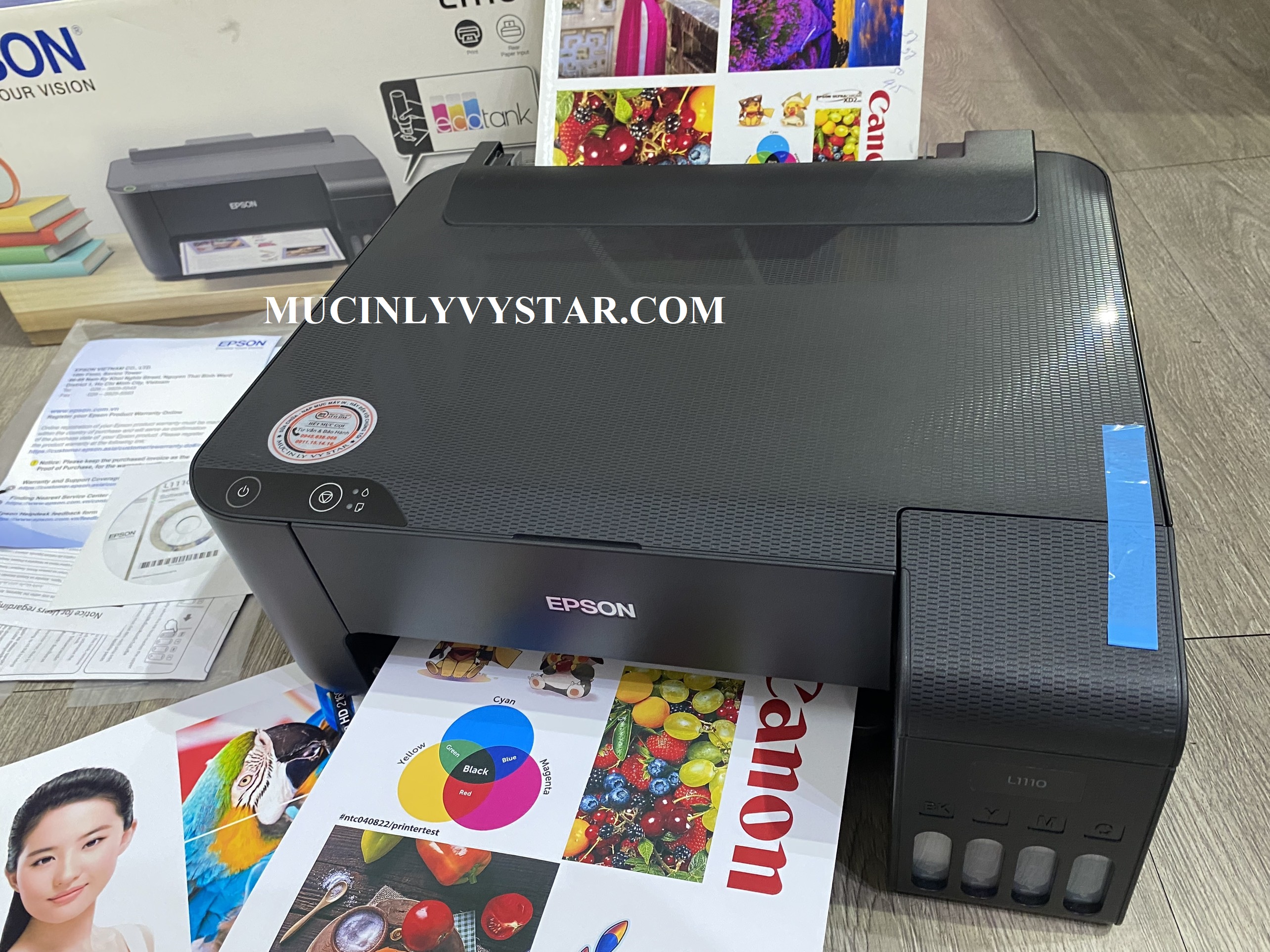 Máy in phun màu Epson L1110 cũ thân thiện với môi trường, không làm ảnh hưởng đến sức khỏe của mọi người xung quanh, máy đa sắc có 4 màu đen, vàng, xanh, đỏ thân thiện, mang lại năng suất cao, không có bụi như mực in laser mà các bản in vẫn đẹp và chất lượng