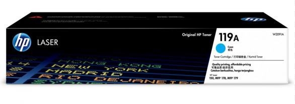 Mực hộp máy in laser HP 119A Cyan (W2091A) - Dùng cho máy in HP Color Laser 150a, HP Color Laser 150nw, HP Color Laser MFP 178nw, HP Color Laser MFP 179fnw