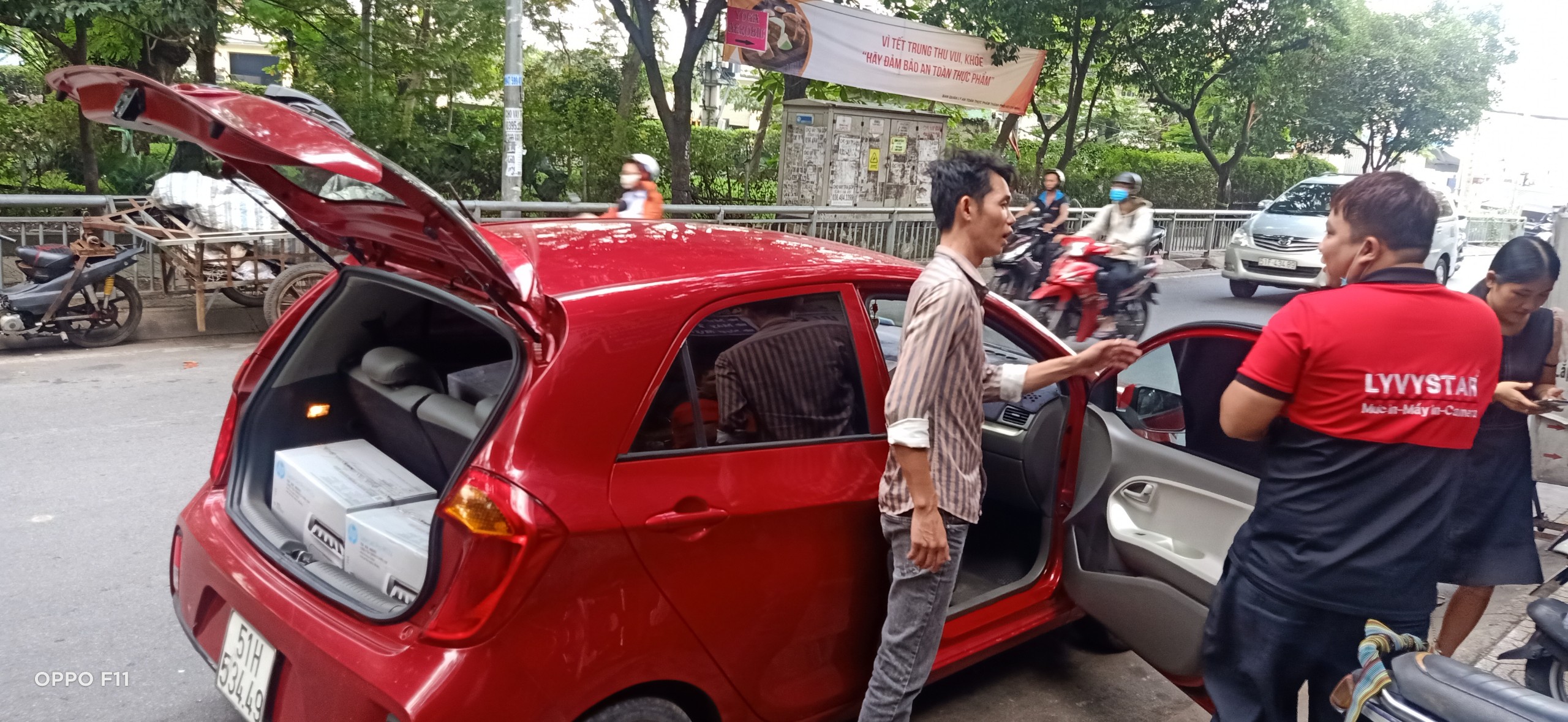 Nhân viên Lyvystar Sài Gòn giao máy in cho khách tại Quảng Ngãi.