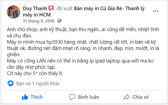 - Hiện nay nhiều model bán chỉ bán,không quan tâm người dùng ra sao,gặp khó khăn gì,và người dùng tháy giá rẻ thì mua.Không am hiểu về máy in là máy,có am hiểu cũng qua loa trên google chia sẻ,xui đọc trúng bài chia sẻ PA của nhà bán cũng như không.Vì thế không ai chân thật bằng người bạn hay đồng nghiệp của mình đã từng sử dụng qua model máy này.