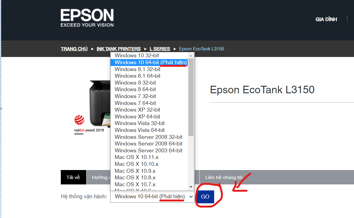 Tiếp theo, khi truy cập vào link trên bạn chọn vào ô kế bên dòng chữ Hệ thống vận hành tìm mục có chữ Phát hiện và chọn vào mục đó, sau đó bạn nhấn vào chữ GO (VD như hình bên dưới).