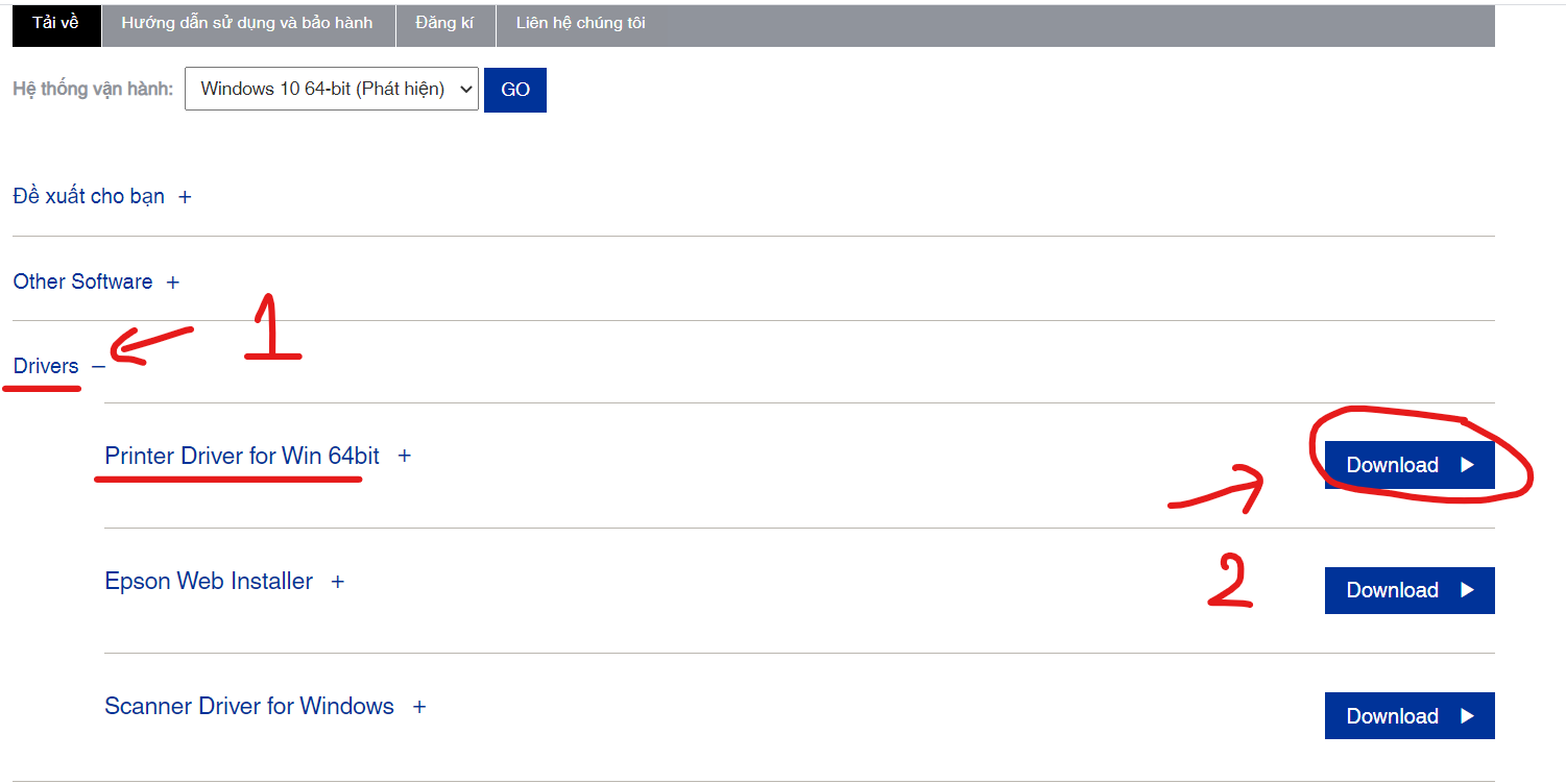 Kế tiếp, sau khi bấm GO bạn kéo chuột xuống tìm và chọn chữ Driver đang hiển thị và chọn mục Download bên tay phải