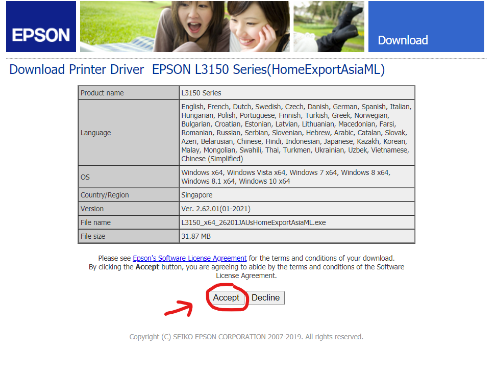 Bảng cửa sổ mới sẽ xuất hiện, chọn Accept để tiến hành download Driver máy in về máy tính